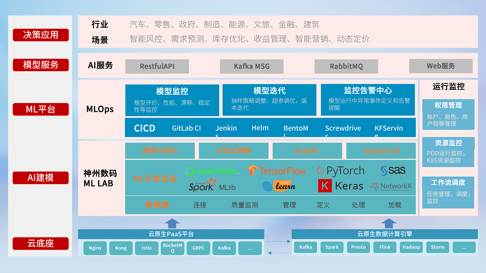 数据+模型双引擎驱动,,,,面向智能服务场景,,,,快速灵活利用AI技术,,,支持业务决策,,,助力企业智能化转型破局。。